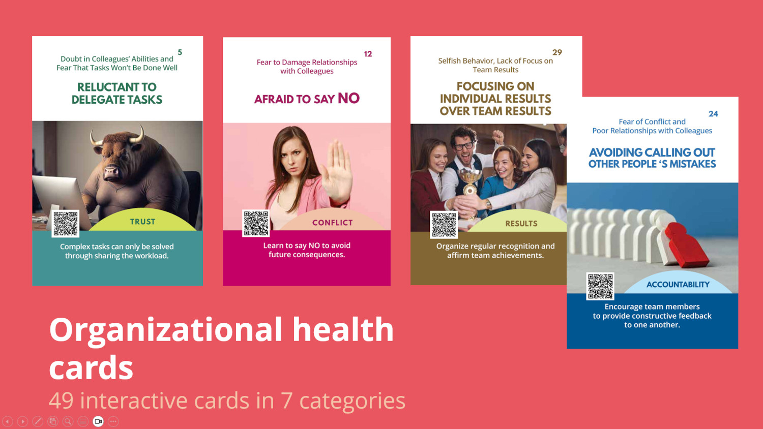 - How can you discover the root causes of these challenges and successfully solve them using our visual interactive “team effectiveness” cards?